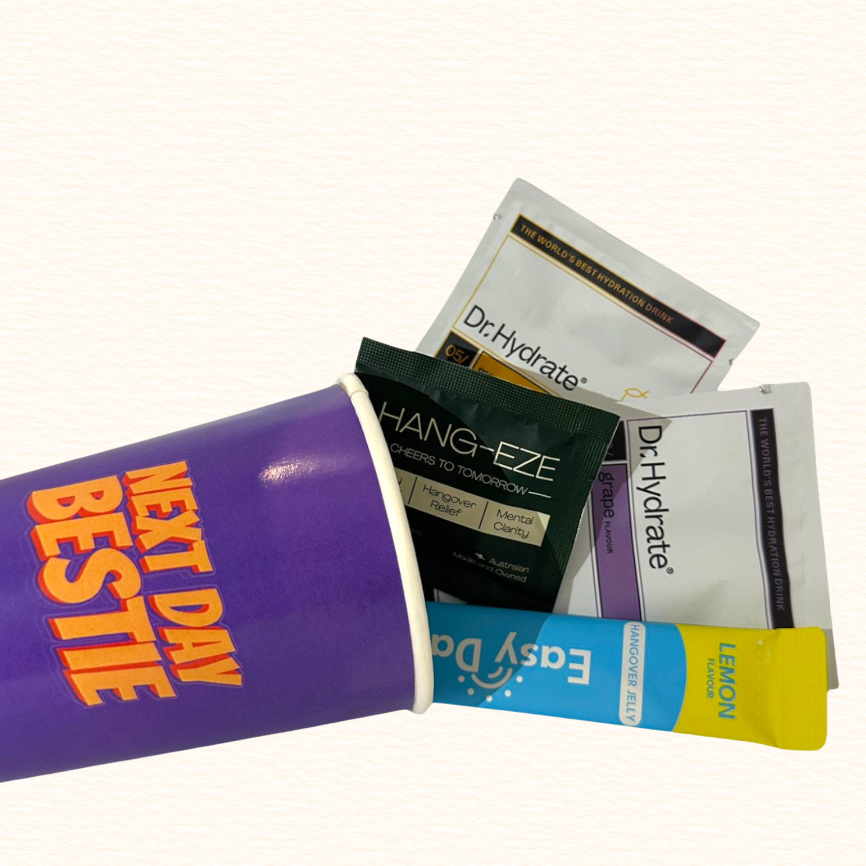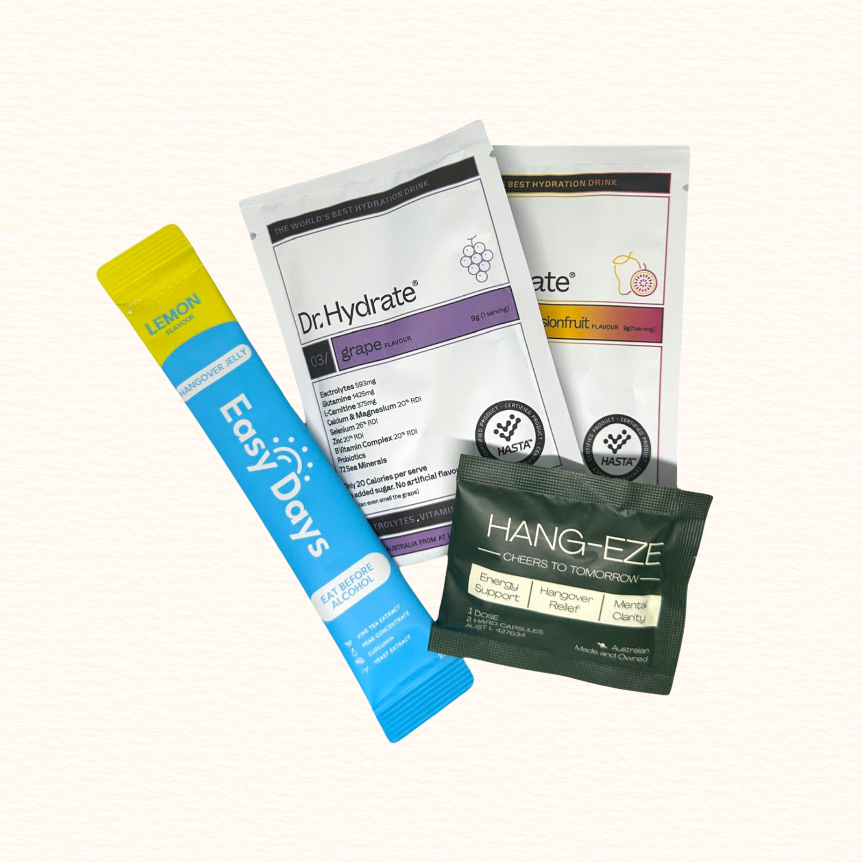 The Essentials Kit is your ultimate hangover recovery companion. Wake up feeling great with these simple 3 steps, featuring carefully curated products you'll love (that really work!)